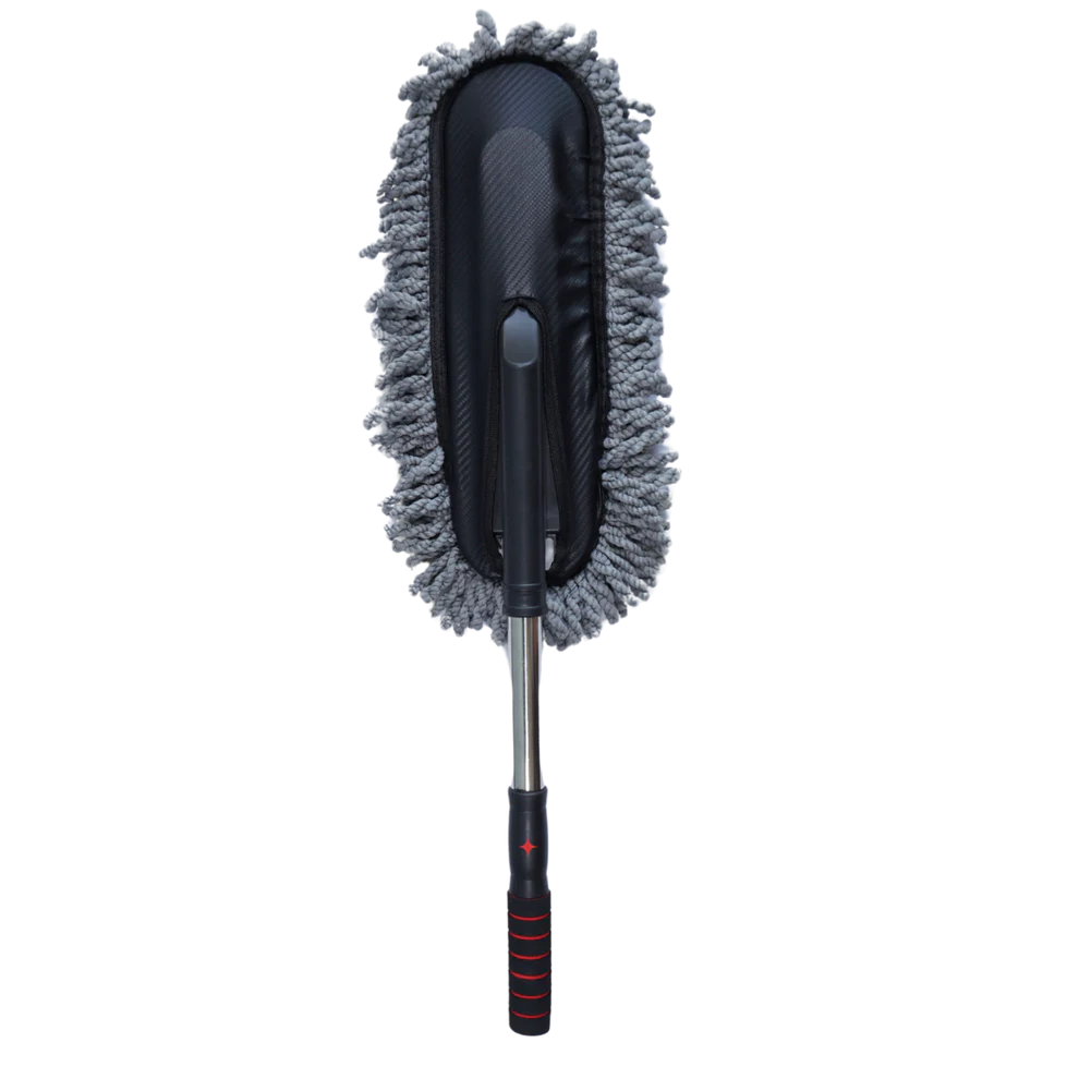 Perie auto/universală cu cap din microfibră tip chenille, ideală pentru îndepărtarea rapidă a prafului fără zgârieturi. Mânerul metalic telescopic te ajută să ajungi ușor pe plafon, capotă sau zone greu accesibile, iar capul interschimbabil se detașează pentru spălare ori înlocuire.
