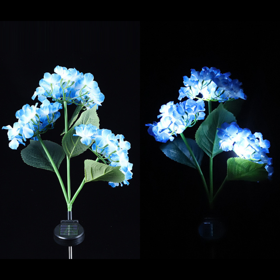 Set 2x lampi solare hortensie albastra – 70cm, iluminare LED cu senzor, panou solar integrat, IP66 – decor elegant pentru curte sau gradina!
